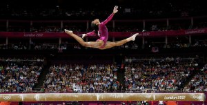 U.S. gymnast Gabrielle Douglas performs on the balance beam during the artistic gymnastics women’s individual all-around competition at the 2012 Summer Olympics, Thursday, Aug. 2, 2012, in London. (AP Photo/Gregory Bull)