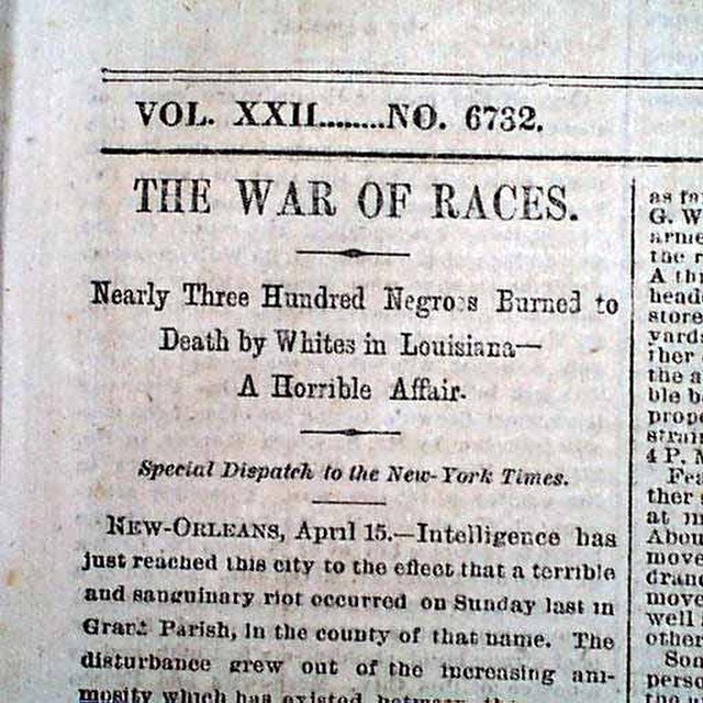 Colfax Massacre 1873, Louisiana. Image: New York Times April 16 1873