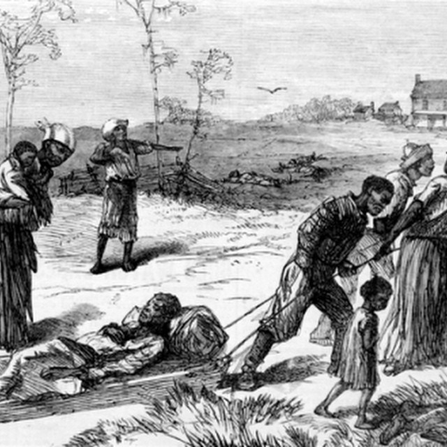 Colfax Massacre, Louisiana 1873. Survivors dragging away the dead and injured