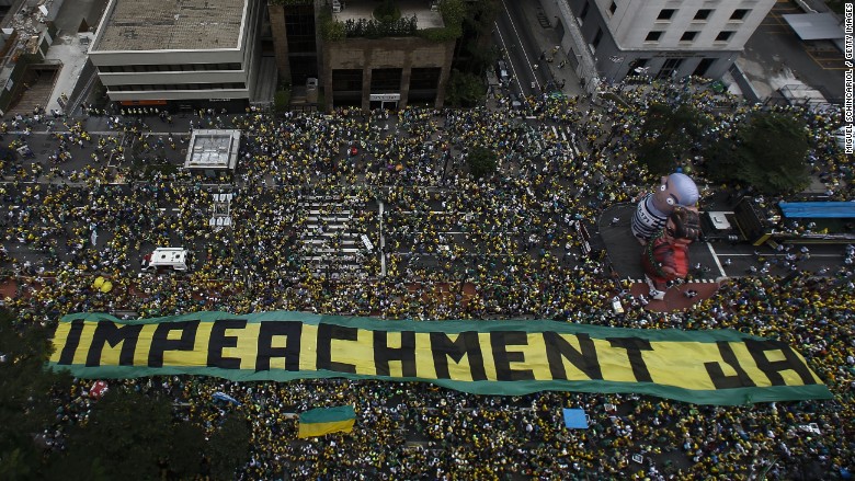 Demonstrators rally to demand Brazilian President Dilma Rousseff’s impeachment in Sao Paulo, Brazil, March 16, 2016. (Photo by AFP)