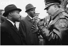 Police Chief Laurie Prichett tells Dr. Martin Luther King, Jr. (L) and Dr. W. G. Anderson they are under arrest 1961. (Wikimedia).