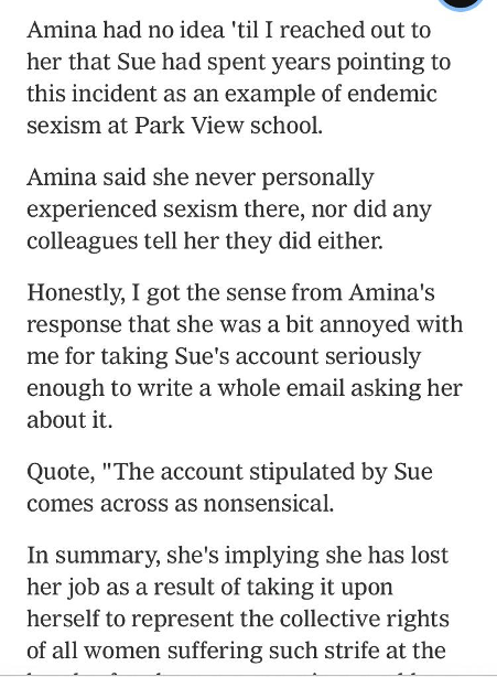 It’s the story of how people were duped into believing Steve and Sue Packer’s version of events at the school in question – without any corroboration of their story.