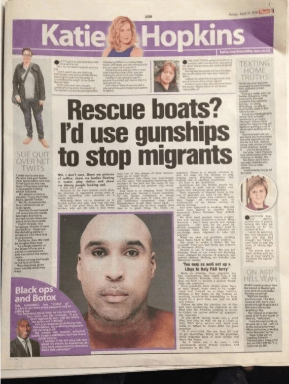 Those of us who could be described as cockroaches and dismissed in a Katie Hopkins article have to extend solidarity. White Europeans fleeing persecution must take precedence over others fleeing a war zone, yes even if it means as a Black or Brown person fleeing Ukraine you have to stay and let the White Ukrainians flee first from the Russian invasion.
