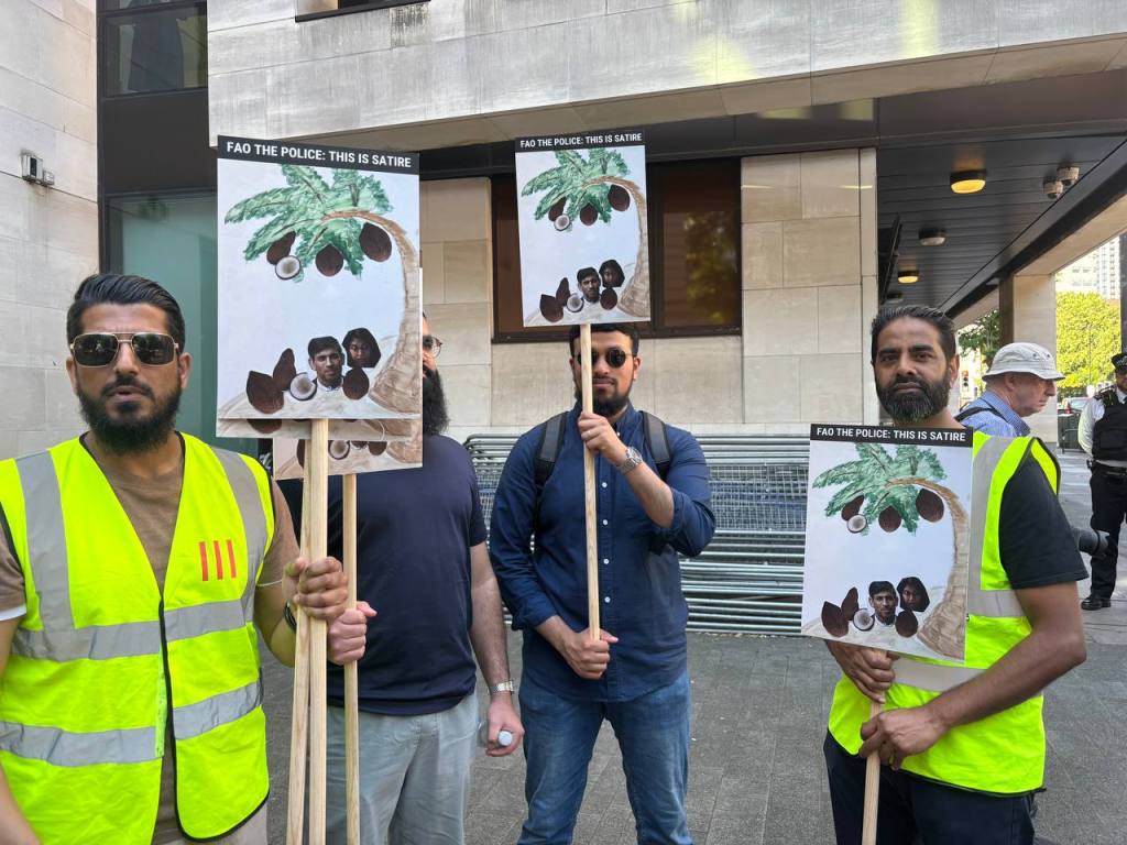 It’s June and I’ve been in Istanbul less than twenty-four hours on a break with my wife, when my phone starts buzzing with news that five of my colleagues (and later that night a sixth), have been arrested for holding up placards of former Home Secretary Suella Braverman and Prime Minister Rishi Sunak depicted as coconuts – with messaging clearly stating that such imagery is satirical in solidarity with Marieha Hussain, the originator of the poster.